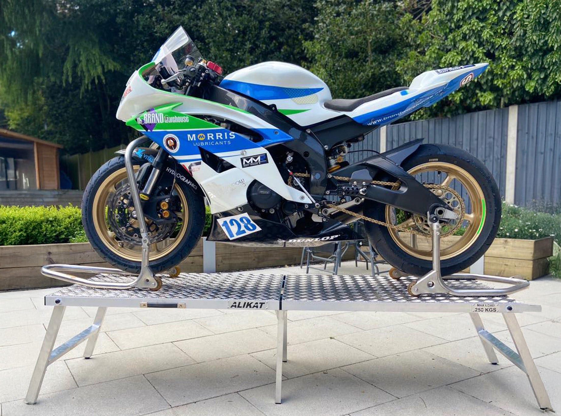 Used by British superbike teams, World superbike teams and many club racers. Also featured in practical sports bike magazine showing its versatility for the home enthusiast with limited space that cannot justify having a permanent hydraulic lift always taking up valuable floor space.